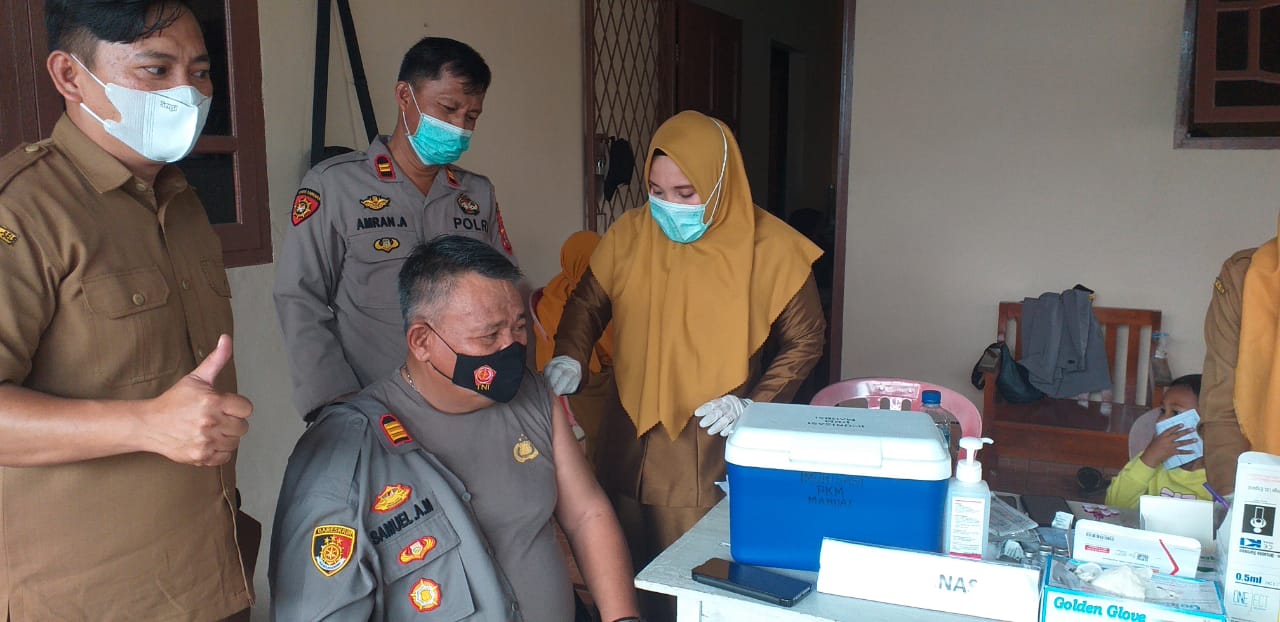 Maros,- Percepatan giat vaksinasi pada tahap ketiga (Booster ) Kapolsek bersama personil polsek mandai Polres Maros Lurah Hasanuddin ikut vaksin ketiga .pada Senin (7 /2/ 2022).