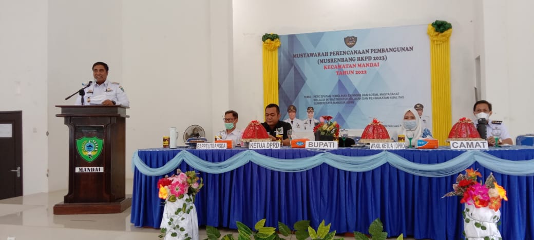 Abd.Rasak, camat Mandai dalam sambutannya mengatakan, untuk wilayah kecamatan Mandai terdapat dua kelurahan dan empat desa mengikuti kegiatan musrembang di kantor kecamatan hari ini dengan tema “percepatan pemulihan ekonomi dan sosial masyarakat melalui Infrastruktur wilayah dan peningkatan kwalitas sumber daya manusia (SDM), kata camat mandai