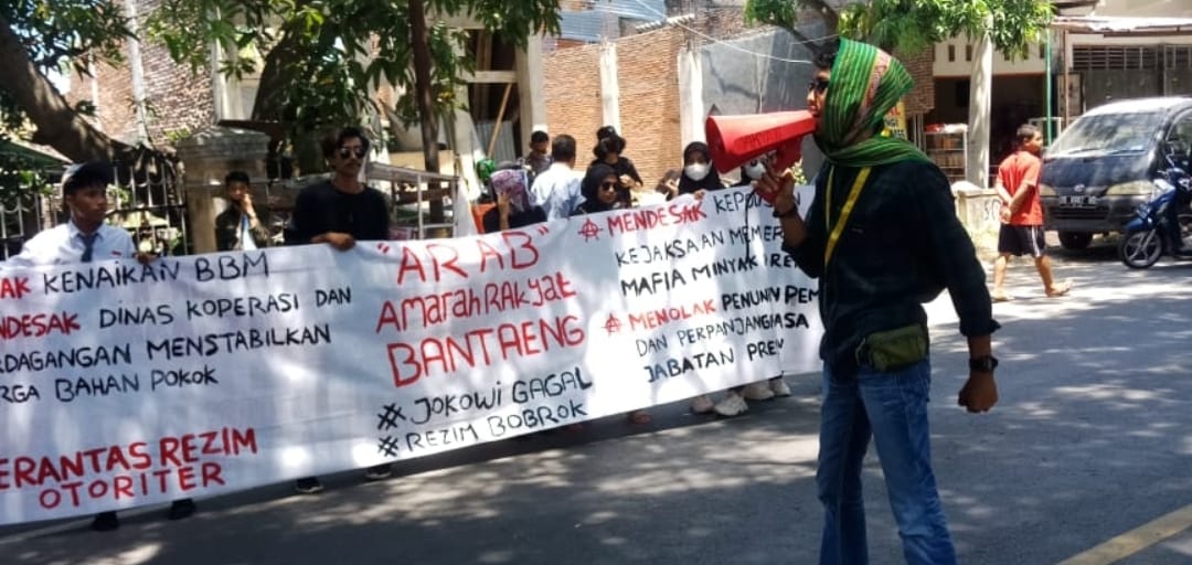 Bantaeng,- Massa yang tergabung dalam Aliansi Amarah Rakyat Bantaeng (ARAB) menggelar demonstrasi depan DPRD Bantaeng, Senin (11/4/2022).