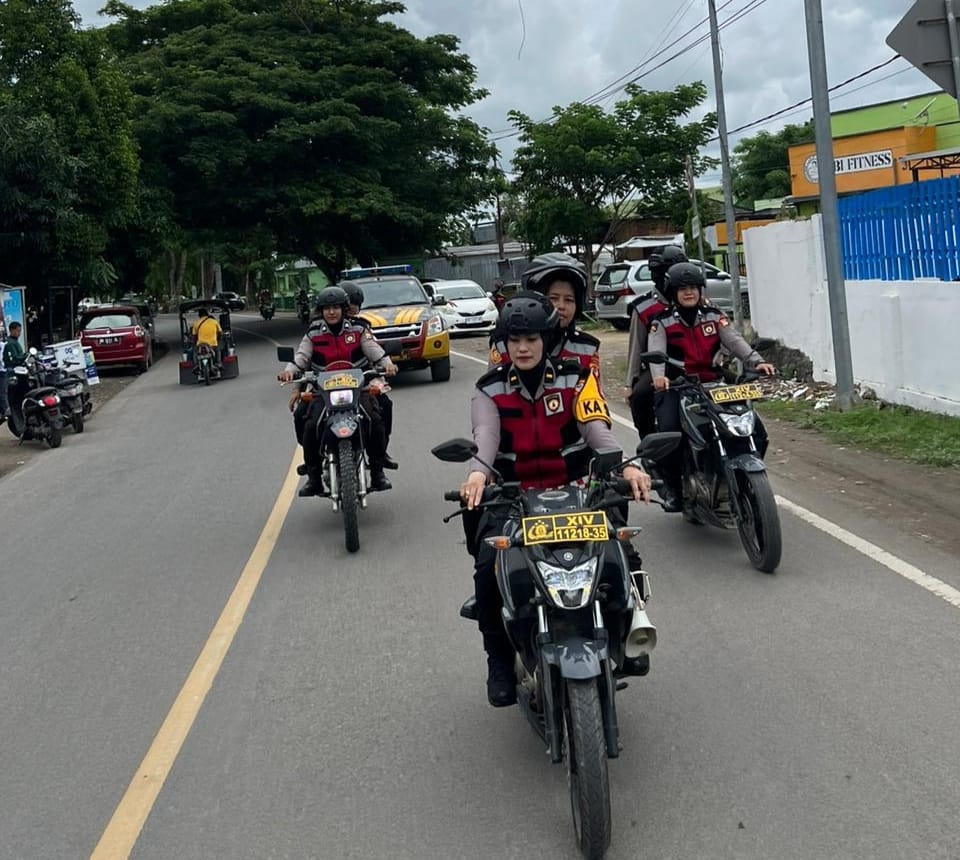 BULUKUMBA — Sehari jelang tahapan pemungutan suara, Personel Polwan (Polisi Wanita) Jajaran Polres Bulukumba menggelar patroli dialogis dan memantau situasi Kamtibmas di wilayah Kota Kabupaten Bulukumba. Selasa (13/2/2024)