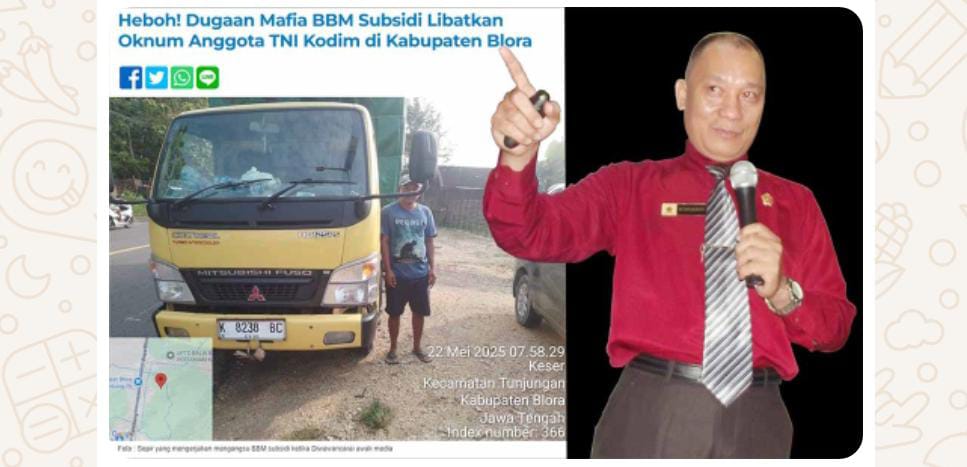 Yudhaindonesianews.Com, Jakarta – Ketua Umum Persatuan Pewarta Warga Indonesia (Ketum PPWI), Wilson Lalengke, S.Pd, M.Sc, MA, menilai Kepolisian Resor Blora, Polda Jawa Tengah, terindikasi kuat bekerjasama dengan para bandit mafia BBM illegal jenis solar di wilayah Blora. Hal itu disampaikan wartawan senior tersebut ke jejaring media se-Indonesia hari ini, Sabtu, 31 Mei 2025, merespon penangkapan tiga orang wartawan Jawa Tengah, Denok dkk, dengan tuduhan melakukan pemerasan terhadap Rico, oknum anggota TNI pelaku penimbunan dan penyaluran BBM Subsidi secara illegal.