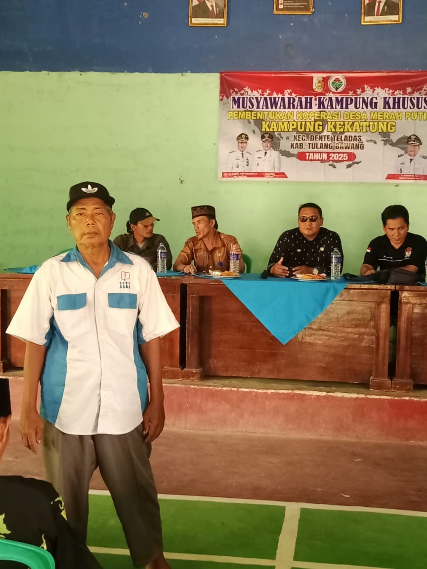 Pelaksanaan Pemilihan Ketua Koperasi Merah Putih dipimpin oleh Kepala Desa Kekatung H.Heryanto dan Ketua Badam Pengawas Desa ( BPD ) yang didamping yang didampingi 2 orang dari pemerintahan Kecamatan Denteladas Kabupaten Tulang Bawang